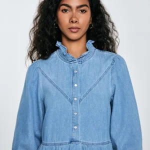 Sukienka damska mini jeansowa z dodatkiem lnu niebieska Rosalie 280