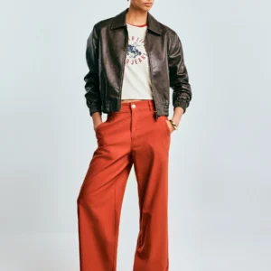 Spodnie damskie z szeroką nogawką z dodatkiem lnu ceglano-czerwone Malu 704