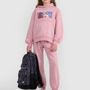 4F Bluza dresowa nierozpinana z kapturem dziewczęca – różowa 128 (7-8 lat)