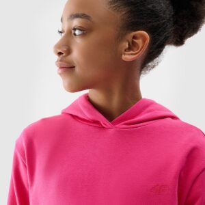 4F Bluza dresowa nierozpinana z kapturem dziewczęca – różowa 146 (10-11 lat)