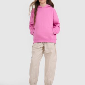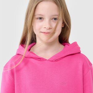 4F Bluza dresowa nierozpinana z kapturem dziewczęca – różowa 122 (6-7 lat)