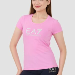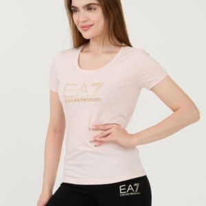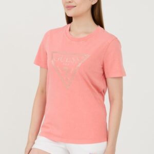 GUESS Różowy t-shirt damski z trójkątnym logo