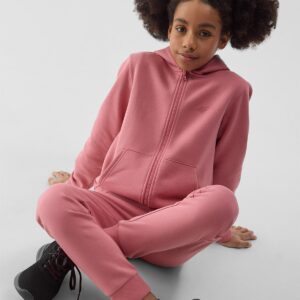 4F Bluza dresowa rozpinana z kapturem dziewczęca – pudrowy róż 158 (12-13 lat)