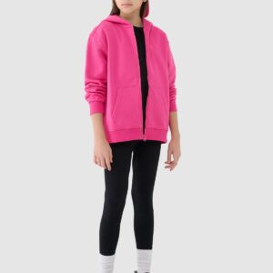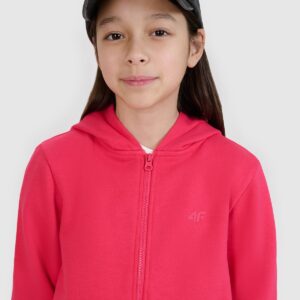 4F Bluza dresowa rozpinana z kapturem dziewczęca – różowa 128 (7-8 lat)