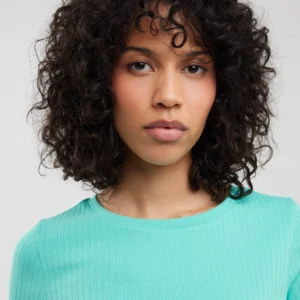 4F T-shirt z prążkowanej dzianiny z modalem damski – turkusowy