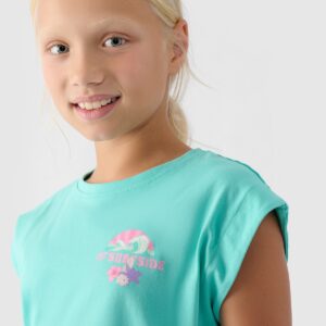 4F Top z nadrukiem dziewczęcy – turkusowy 158 (12-13 lat)