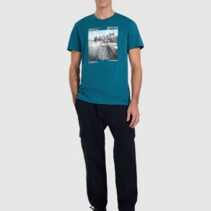 4F T-shirt regular z nadrukiem męski – turkusowy