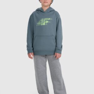 4F Bluza dresowa nierozpinana z kapturem chłopięca – turkusowa 140 (9-10 lat)
