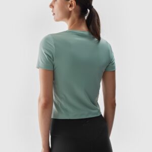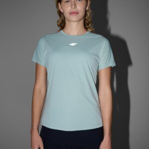 4F Koszulka do jogi i pilatesu slim szybkoschnąca damska – turkusowa