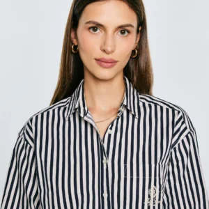 Koszula damska luźna w paski granatowo-kremowe Tina 403