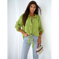 Lniana koszula oversize z wiązaniem DENI – limonkowa