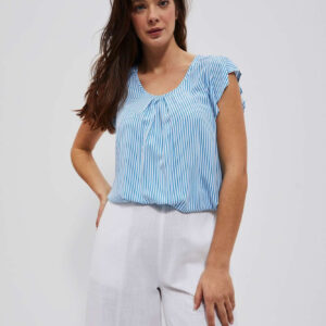 Luźna koszula z krótkim rękawem biało niebieska