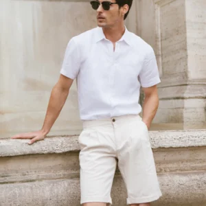 Lniana koszula męska z krótkim rękawem biała Liners 101