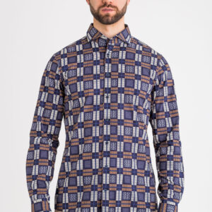 Klasyczna męska bawełniana koszula SLIM FIT w palmy – ciemnoniebieska V5