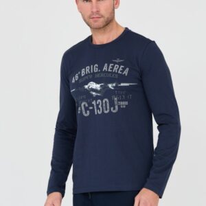 AERONAUTICA MILITARE Granatowy męski bawełniany longsleeve 46th Air Brigade