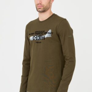 AERONAUTICA MILITARE Zielony męski longsleeve bawełniany