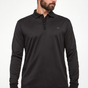 Melanżowy longsleeve męski polo z haftem – niebieski melanż V3