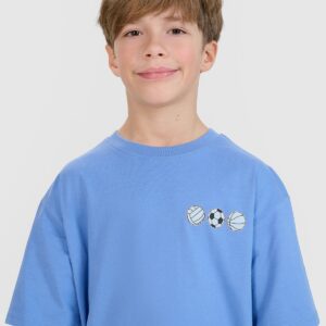 4F T-shirt oversize z nadrukiem chłopięcy – niebieski 140 (9-10 lat)