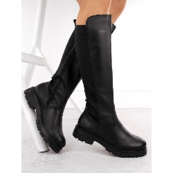 Skórzane kozaki damskie z elastyczną cholewką czarne Rieker Remonte D1B71-01