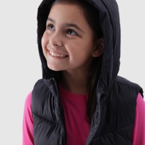 4F Bezrękawnik puchowy pikowany z kapturem dziewczęcy – czarny 158 (12-13 lat)