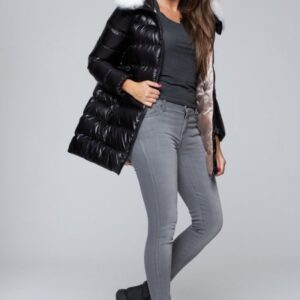 DIEGO M Czarna damska kurtka puchowa z futrem królika, Rozmiar 34 EU – 38 IT