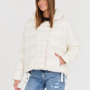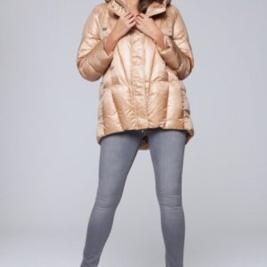 DIEGO M Beżowa damska kurtka puchowa z kapturem, Rozmiar 36 EU – 40 IT