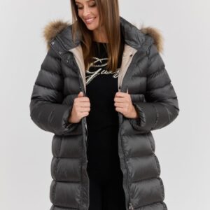 HETREGO Szara damska kurtka puchowa Leonie Quilted Woman Jacket With Detached Hood, Rozmiar 36 EU – 40 IT