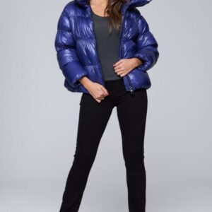 HETREGO Czarna błyszcząca kurtka damska z kapturem Muriel, Rozmiar 34 EU – 38 IT