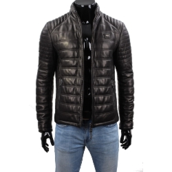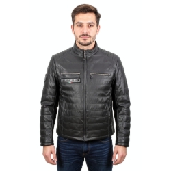 Nowoczesna pikowana kurtka męska z łączonych materiałów – czarna V1