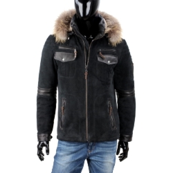 Pikowana męska kurtka z połyskiem i stójką – czarna V1