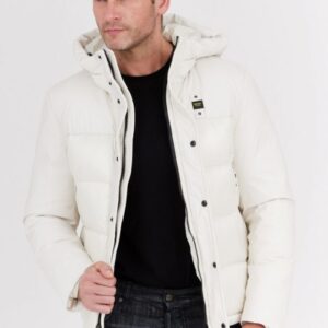 BLAUER Ecru puchowa kurtka męska z kapturem Eduardo