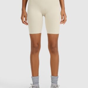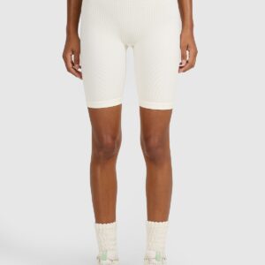 4F Legginsy kolarki treningowe bezszwowe damskie – beżowe