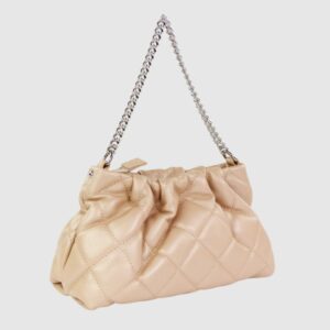 VALENTINO Marszczona pikowana beżowa torebka ocarina recycle pochette