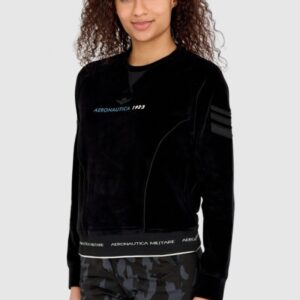 AERONAUTICA MILITARE Czarna welurowa bluza damska w wytłoczone logotypy