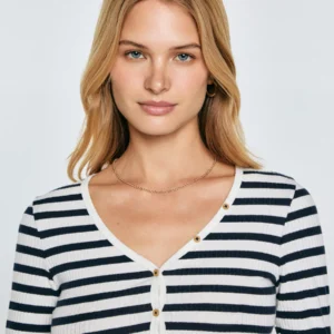 Bluzka damska z dekolotem v-neck w paski granatowa Mella 403