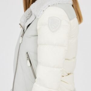 BLAUER Puchowa kurtka ecru damska z kapturem Claudia fashion down jacket with hood