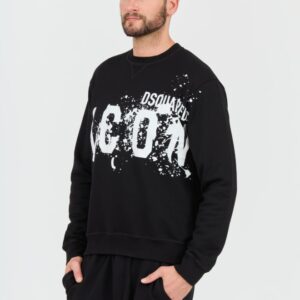 DSQUARED2 Czarna męska bluza Icon Splash Cool Fit Crewneck