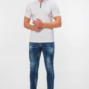 EMPORIO ARMANI Biała męska koszulka polo na zamek