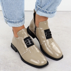 Skórzane botki damskie lakierowane z ozdobą beżowe Filippo DBT4763