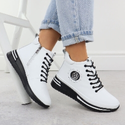 Skórzane botki damskie na koturnie białe Filippo DBT4215