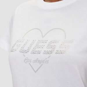 GUESS Biały damski T-shirt bawełniany STONES&EMBRO TEE
