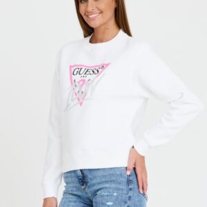 GUESS Biała damska bluza z dużym logo Original Fleece