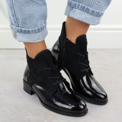 Botki damskie ocieplane lakierowane czarne Jezzi ASA198-15
