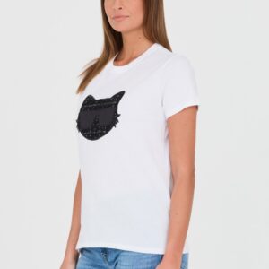 KARL LAGERFELD Biały damski t-shirt Boucle Choupette