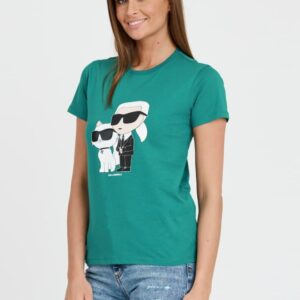 KARL LAGERFELD Turkusowy damski t-shirt Ikonik 2.0