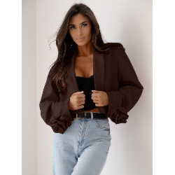 Krótka marynarka oversize z różą na rękawie MALLA – czekoladowa