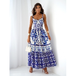 Maxi sukienka z wiskozy na ramiączkach SIMONI – wzór 1