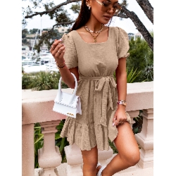 Muślinowa sukienka z odkrytymi plecami ROSETTA – beżowa