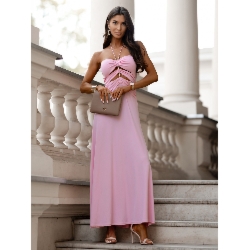Rozkloszowana sukienka maxi z prążka LARIVIA – pudrowy róż