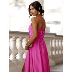 Satynowa sukienka maxi na ramiączkach ARIJA – fuksjowa